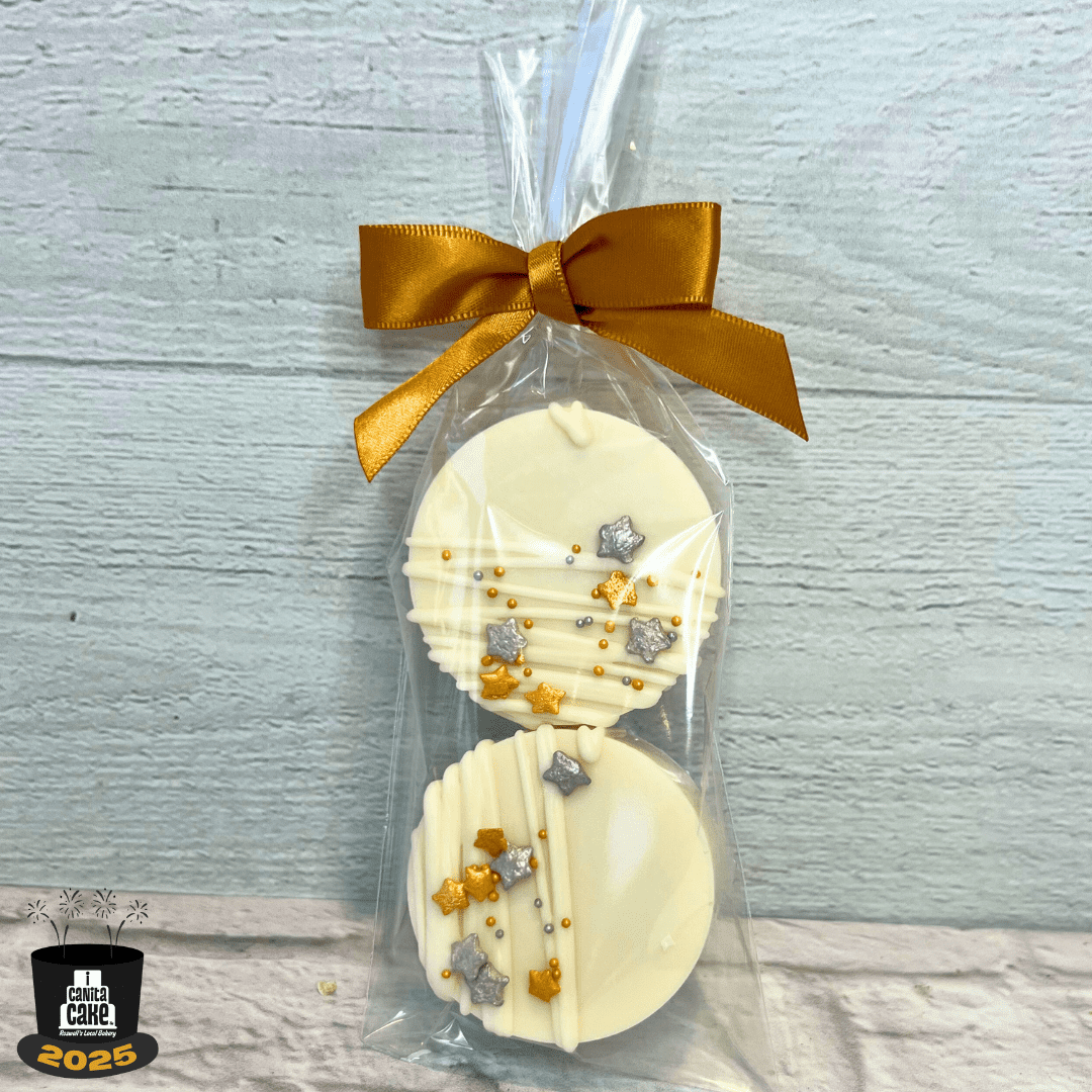Bring the magic of the NEW YEAR to your holiday celebrations with our NYE Dipped Oreos! This boxed set includes two classic Oreos, dipped in candy coating and decorated with a beautiful sparkly design. Sweet, festive, and absolutely delicious – they’re perfect for gifting or enjoying yourself this holiday season!