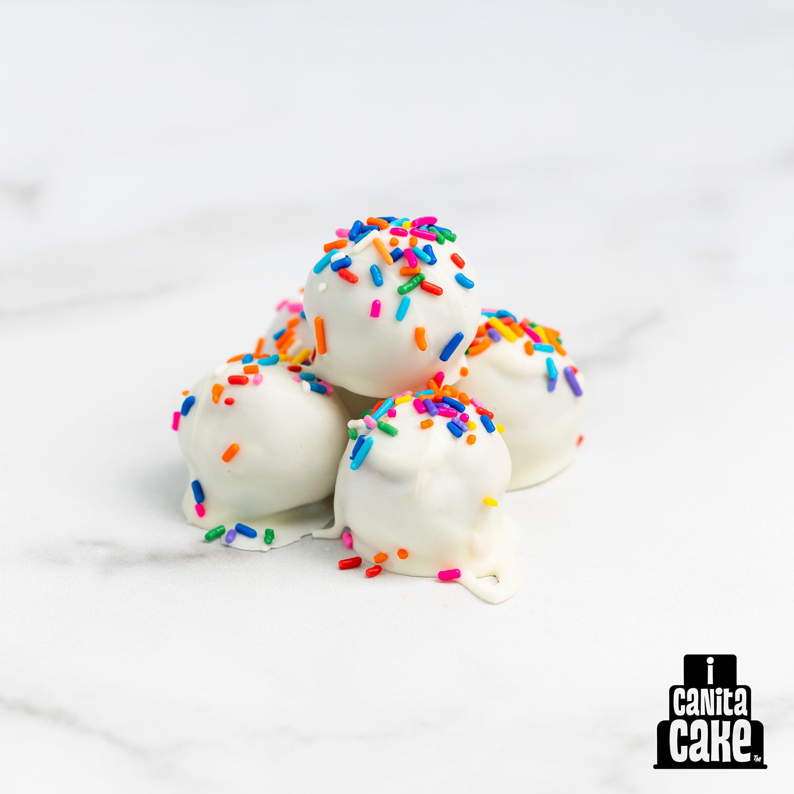 The irresistible Funfetti Cake Bite – a fan favorite that’s guaranteed to bring joy with every bite! Indulge in the delightful blend of our light and fluffy cake, expertly paired with rich buttercream icing, and coated in a sweet candy coating for the perfect crunch. With a perfect balance of sweetness and texture, these delightful treats are sure to be a hit at any celebration or as a sweet indulgence any time of the day.